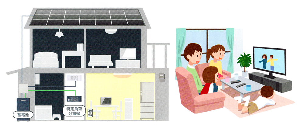 システム設置時にあらかじめ設定した配線(指定のコンセントなど)へ電気を供給し、長期の停電に備え、電気の使い過ぎを防ぎます。