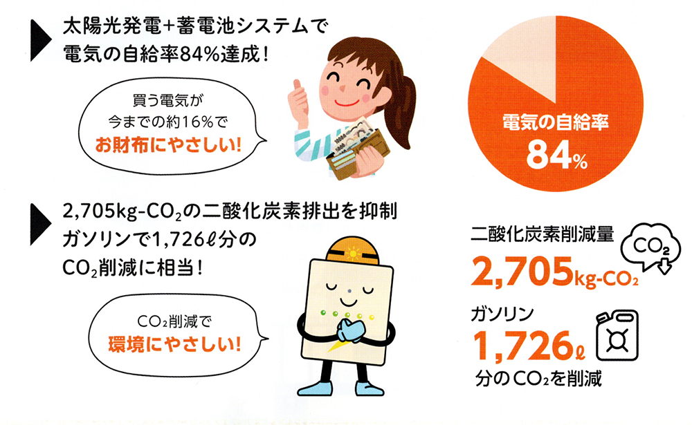 太陽光発電+蓄電池システムで電気の自給率84%達成!
